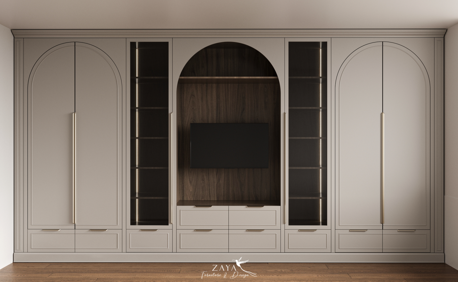 Dulap realizat din MDF vopsit si PAL melaminat cu textura de lemn, destinat dormitoarelor.
